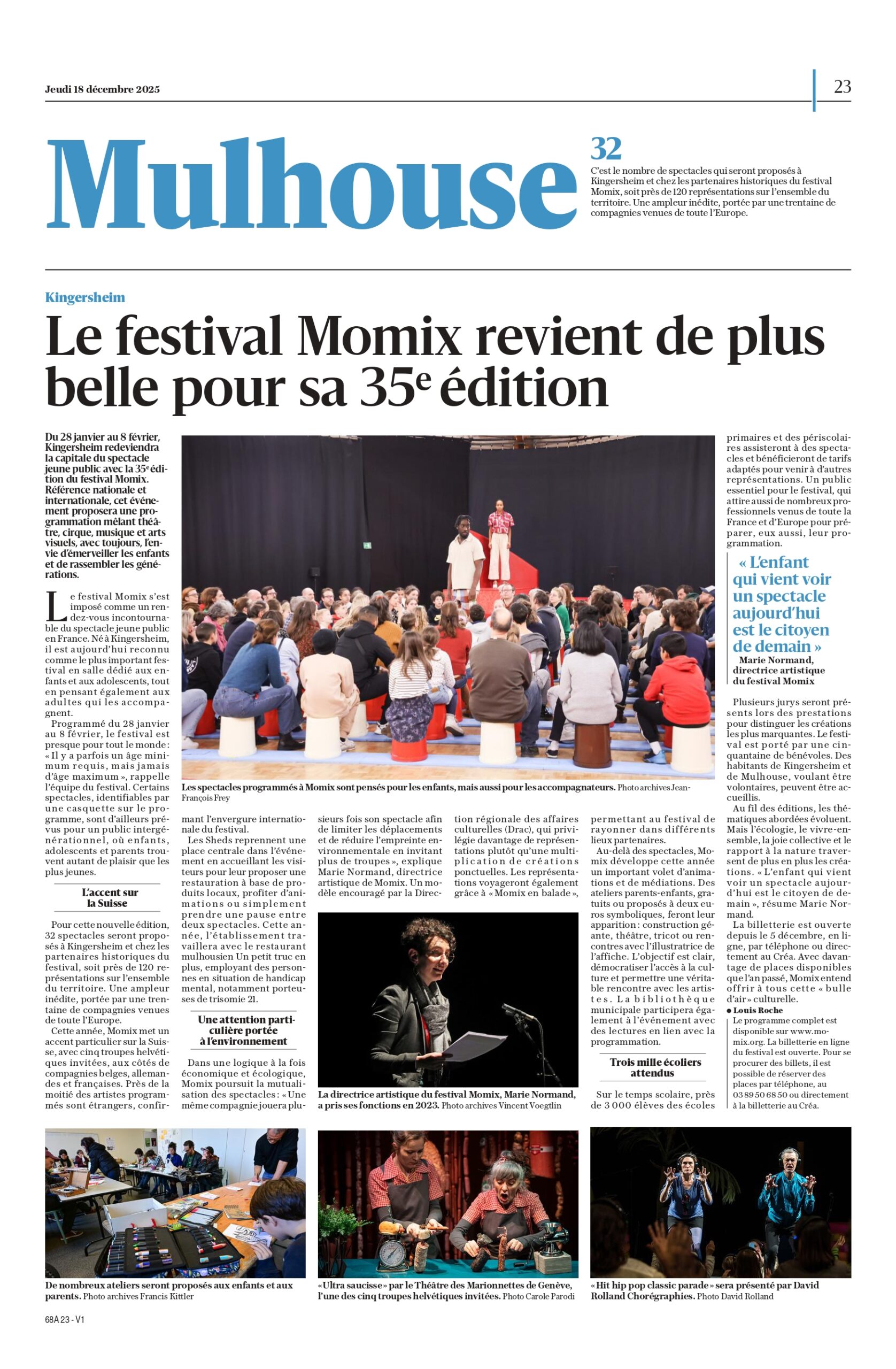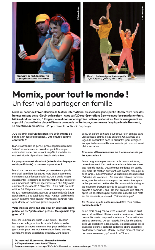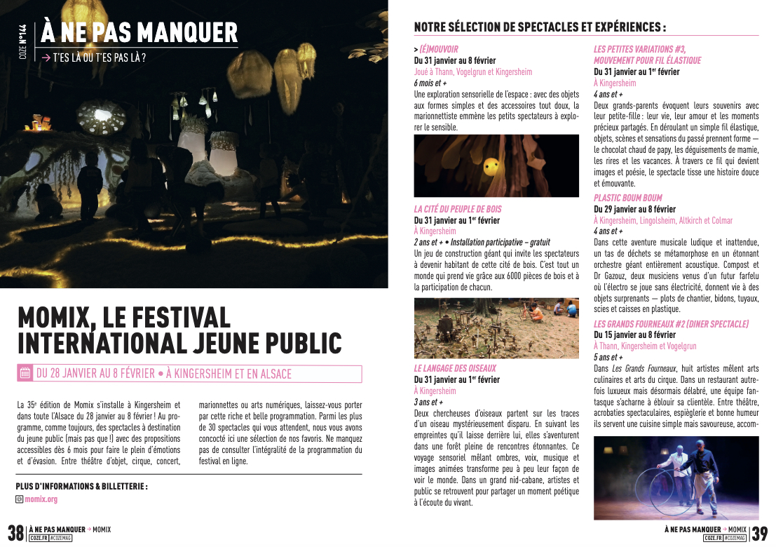 Journal L’Alsace/DNA, Poly, Novo, Diversions, JDS, Piccolo, Coze…© Spectacle Bestiarium – Annina Mosimann